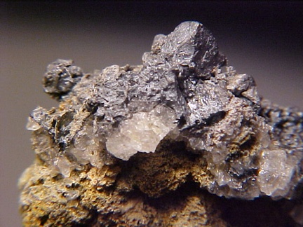 matrix of tiny colorless fluorite crystals!!! The acanthite crystals have silvery gray metallic luster and