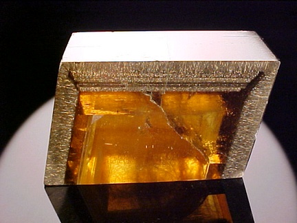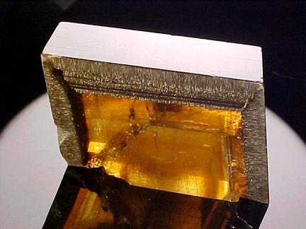 The crystal has been polished on all sides and shows sharp golden phantoms and a pronounced zone of sparkling marcasite crystal inclusions!!! The