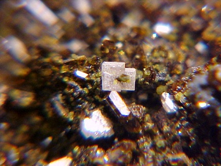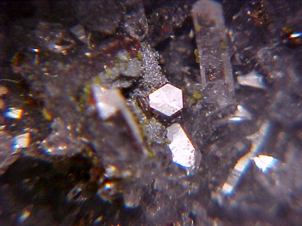 present as small, square-shaped tabular crystals that are almost white in color!!! Upon close inspection one can see