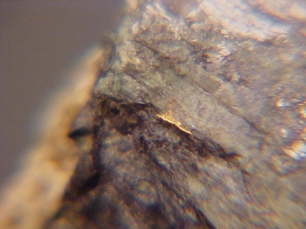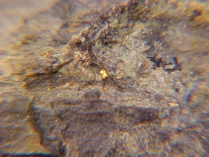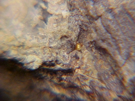 that hosts numerous submillimeter masses and crystals of native gold!!! Upon close inspection with a loupe or scope, one can see that