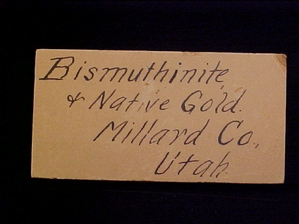 An old time example of bismuthinite with native gold from Utah!!! This specimen consists of a parial crystal of bismuthinite