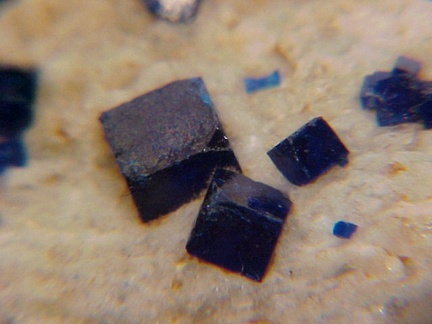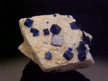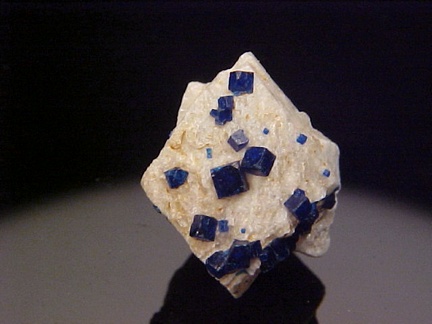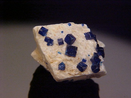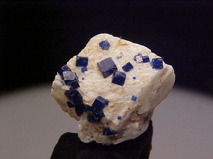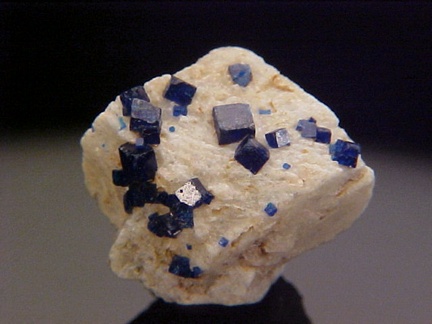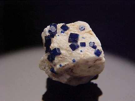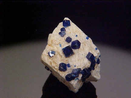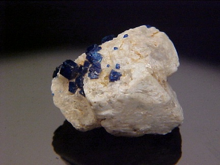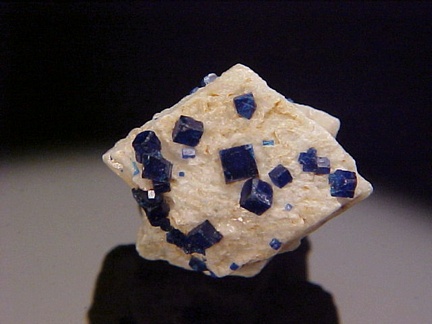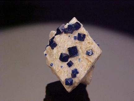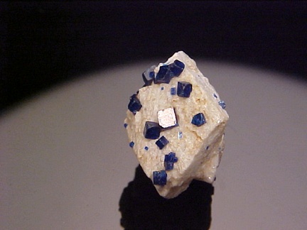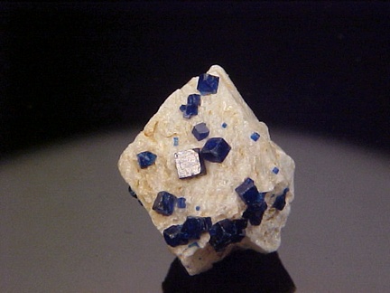 prominently perched on the anglesite crystals!!! The rich, royal blue color of the boleite crystals is quite handsome against the