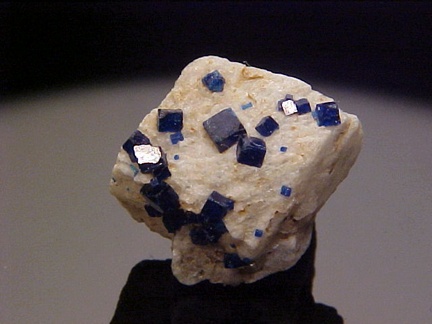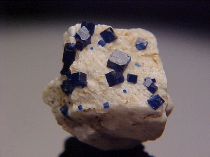 of anglesite that hosts a rich showing of sharp, lustrous, royal blue crystals of boleite!!! The boleite crystals are significantly sized and