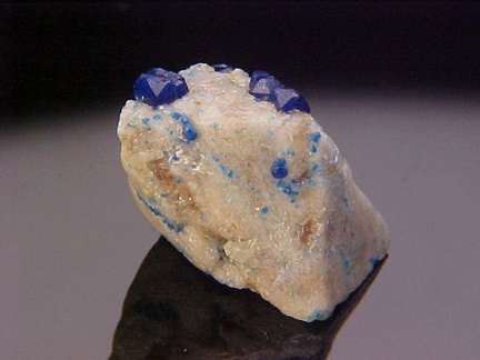 The boleite crystals all exhibit cubo-octahedral modifications, and the characteristic intense royal blue color!!!