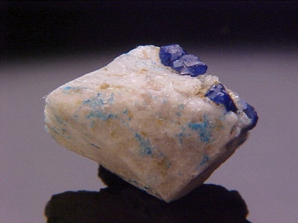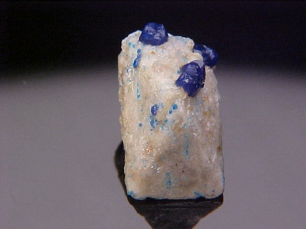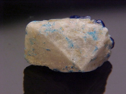 anglesite crystal with in association with several bright blue boleite crystals!!! The anglesite crystal is a complete