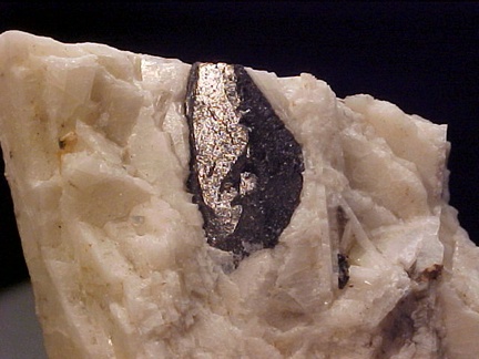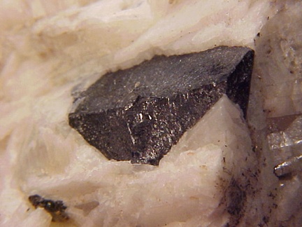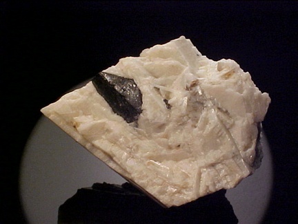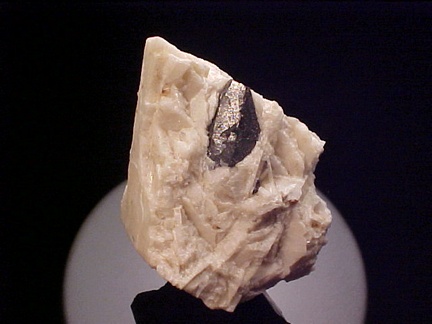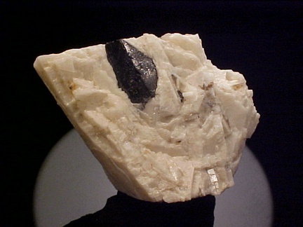 A fantastic example of cassiterite from Maine!!! This specimen consists of a matrix of intergrown crystals of white albite that host a significant, jet black crystal of