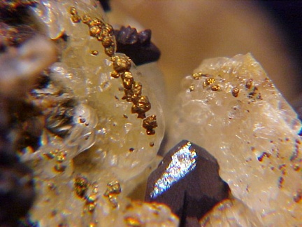 with tiny, golden ball-like crystals of chalcopyrite!!! This specimen retains old labels from the