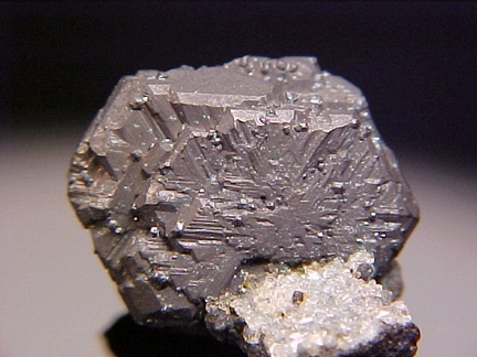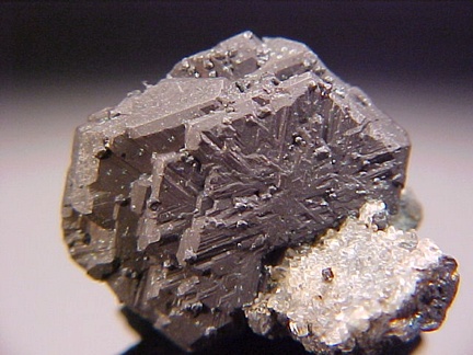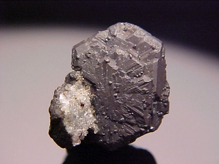 crystal exhibits pronounced striations and measures over 1.7cm!!! The matrix hosts some tiny crystals of calcite and upon close