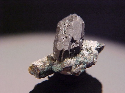 chalcocite prominently perched on a stalk of matrix!!! The chalcocite crystal is sharp, undamaged, and complete!!! The