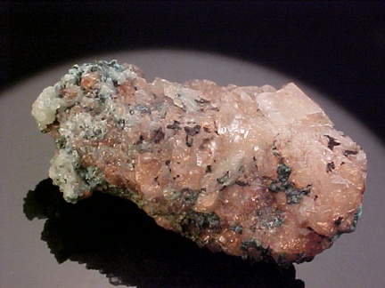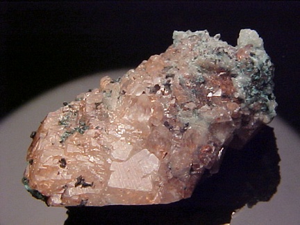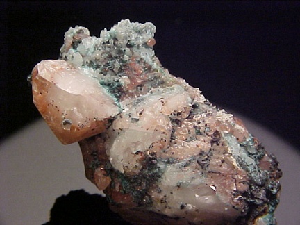 A classic example of copper included calcite from Michigan!!! This specimen consists of a complex calcite crystal that hosts a very rich