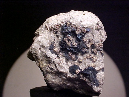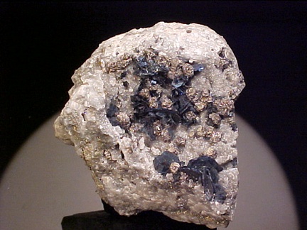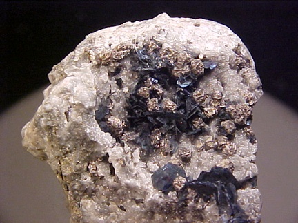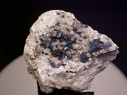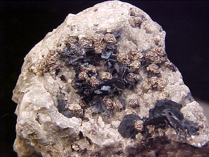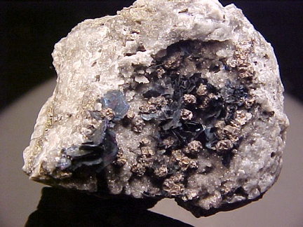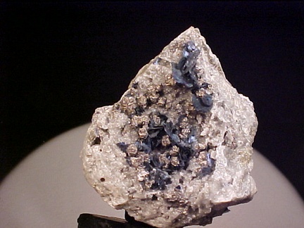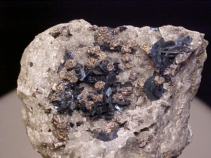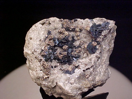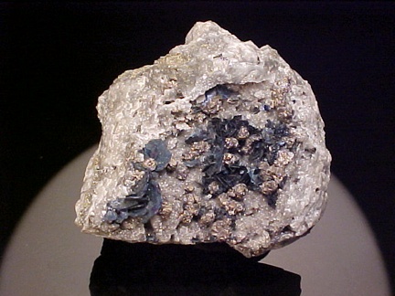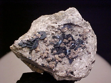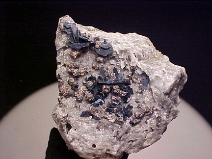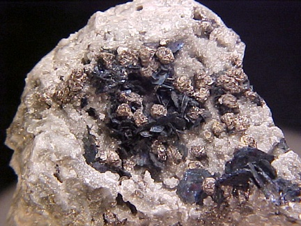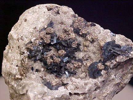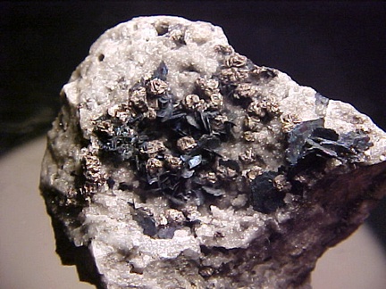 crystals scattered about in a most aesthetic fashion!!! The covellite crystals are present as sharp, hexagonal blades with