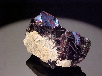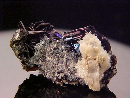 brilliance!!! The crystals have a striking, metallic blue iridescence with highlights of purples and reds!!! The overall