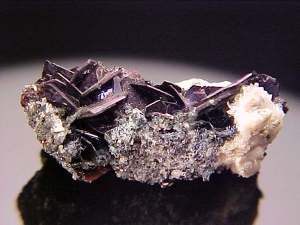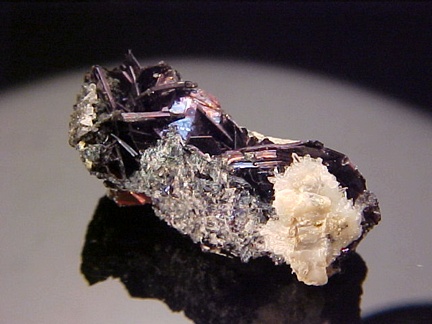of a showy cluster of sharp covellite crystals perched on a quartz matrix!!! While