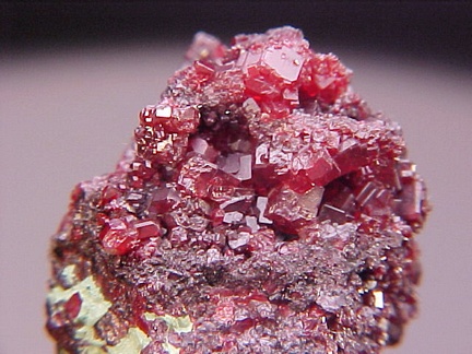 as they are near any lighting the specimen lights up a bright ruby red!!! The crystals have sharp, lustrous faces and modified cubic habits!!! The
