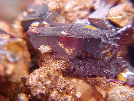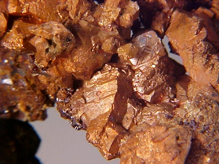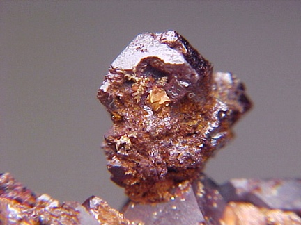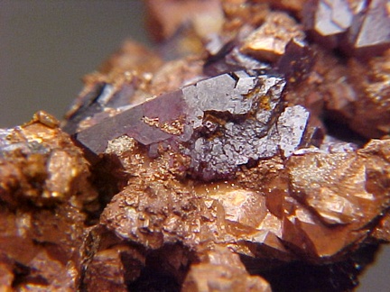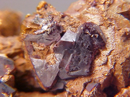 cuprite crystals exhibit all manner of complex features, including numerous areas where the crystals are partially pseudomorphed to native copper!!! Upon