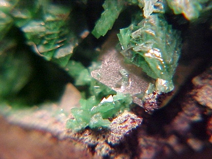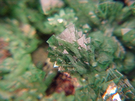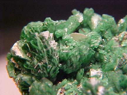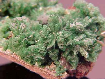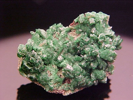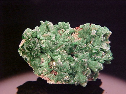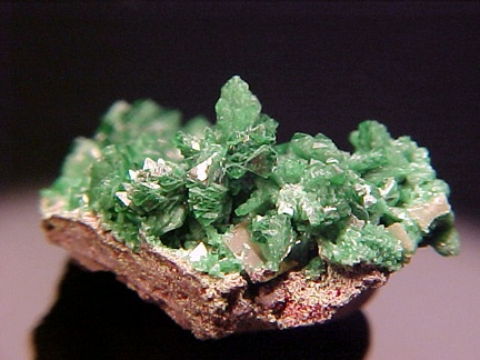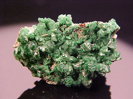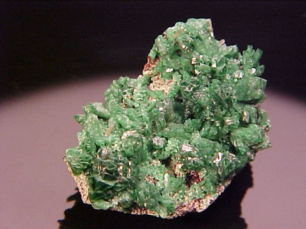 An aesthetic example of cuproadamite from Tsumeb!!! This specimen consists of a strikingly aesthetic cluster of intense emerald green cuproadamite crystals on matrix in minor