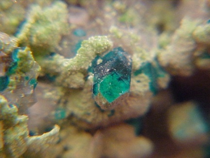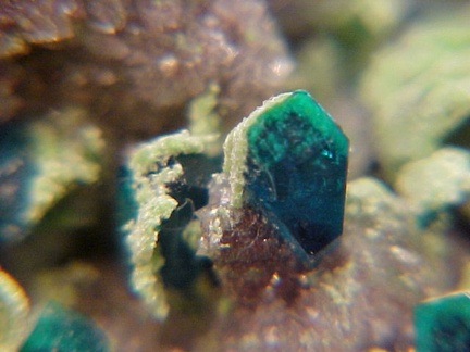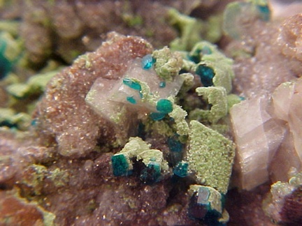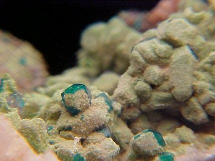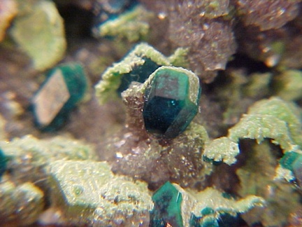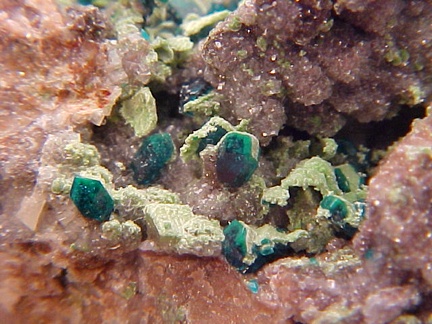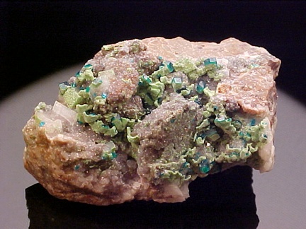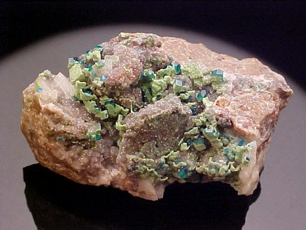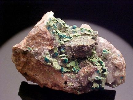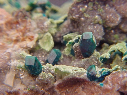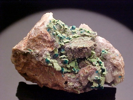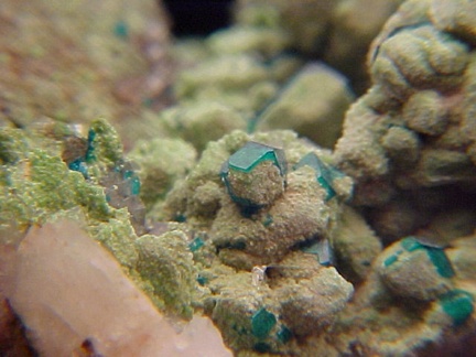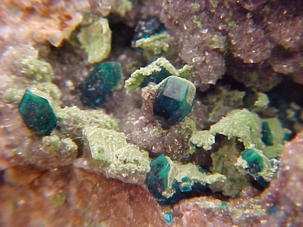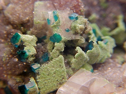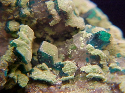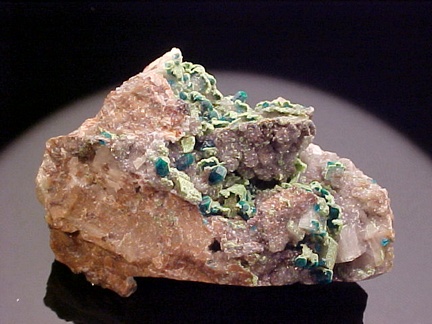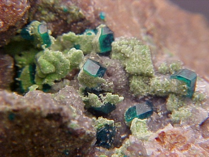 Dioptase with Duftite on Dolomite