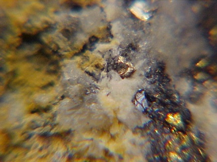 these sulfides are some scattered, tiny submillimeter masses of native gold var. electrum!!! There