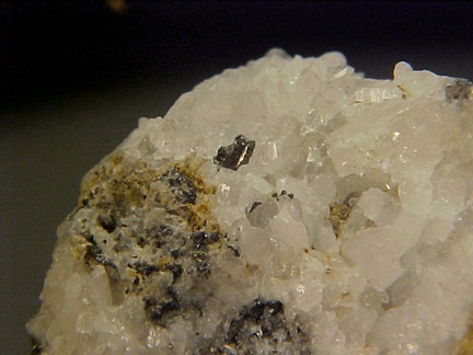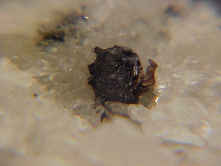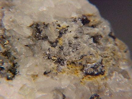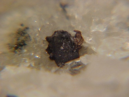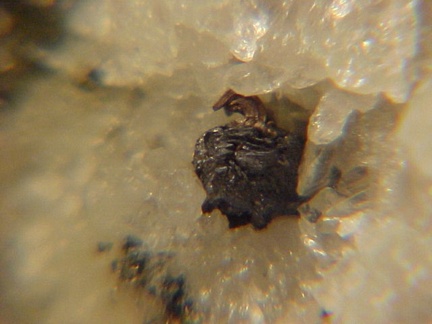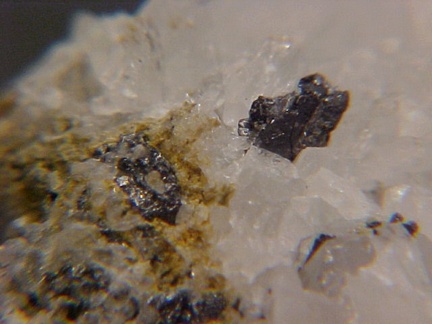 matrix that hosts several tiny crystals of pyrargyrite, acanthite, and possibly other silver-bearing species in addition to