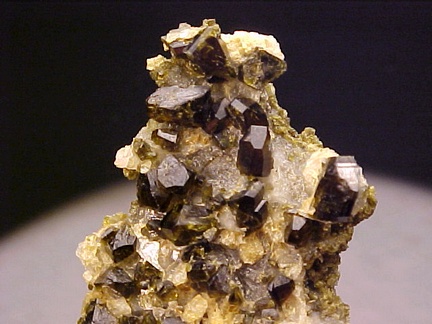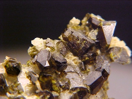 crystals have complex habits, glassy faces, and marked clarity!!! The crystals are on a matrix of complexly etched quartz and massive epidote!!! The
