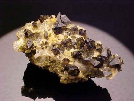 A terrific example of epidote from Colorado!!! This specimen hosts numerous sharp, dark green crystals of epidote on matrix!!! The