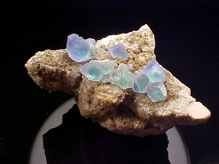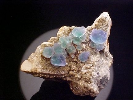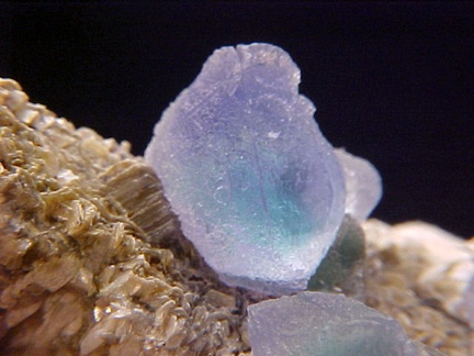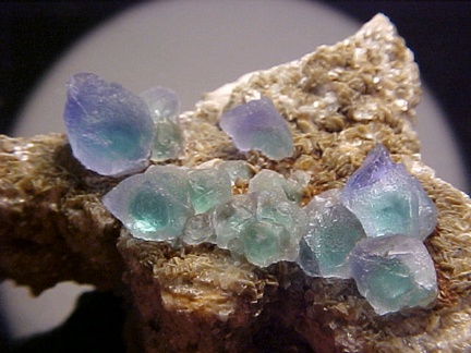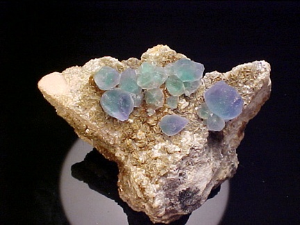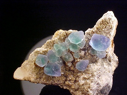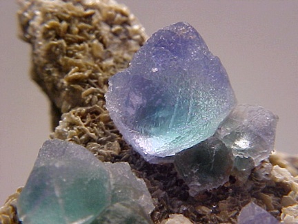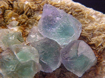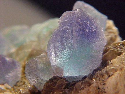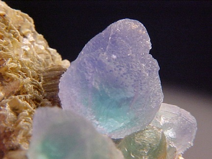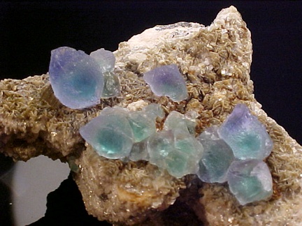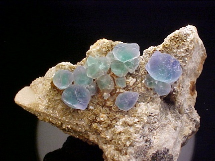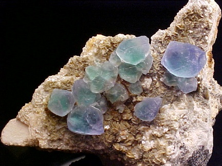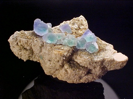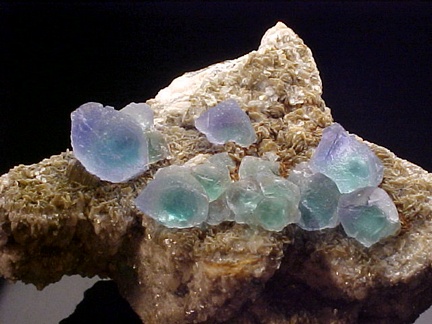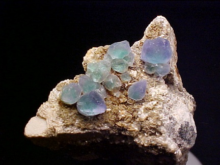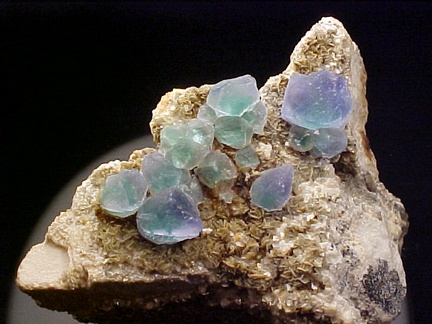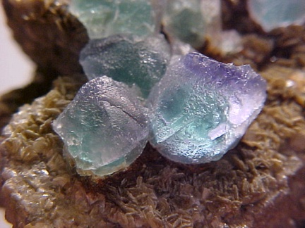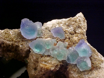 crystals have a predominantly blue color eith bluish green cores, while the smaller crystals are mostly green with a hint of blue!!! This bluish color is quite uncommon for the locality!!! The color of these