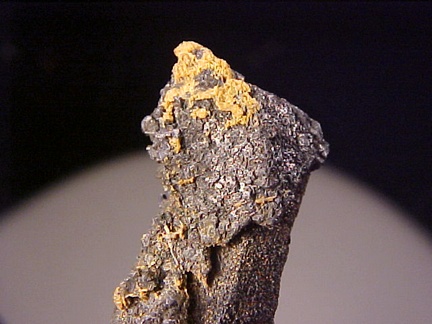 is a small amount of tan colored anglesite in association as well!!! From certain angles one can see minute, oriented crystal faces flash