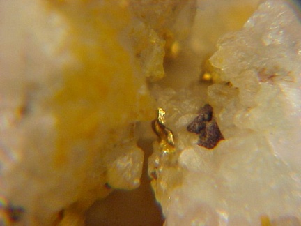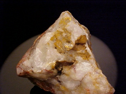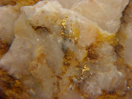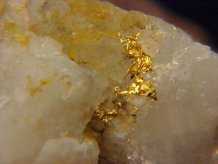 A fantastic example of native gold from Arizona!!! This specimen hosts numerous areas of bright native gold scattered among tiny quartz crystals and cavities in the quartz matrix!!! Upon close inspection one can see some highly complex crystalline features!!! There are also numerous tiny areas of native gold scattered about that cannot be seen in the pics!!! Old material!!! The pics hardly do it justice!!! Must be seen in person to be fully appreciated!!! This specimen is from the collection of Tony Nikischer and retains its original personal collection label!!! We just acquired the 6000+ specimen PERSONAL collection of Tony Nikischer and there are going to be some very exciting minerals to come in the upcoming days and weeks!!! Good luck and be sure to check out my other exciting mineral auctions on ebay!!!
