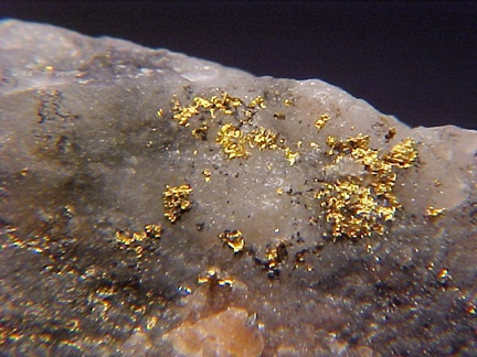 scope one can see some small subhedral crystals as well!!! Some of the native gold on the surface has a thin layer of darkly colored