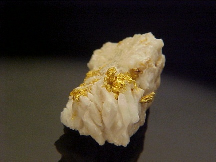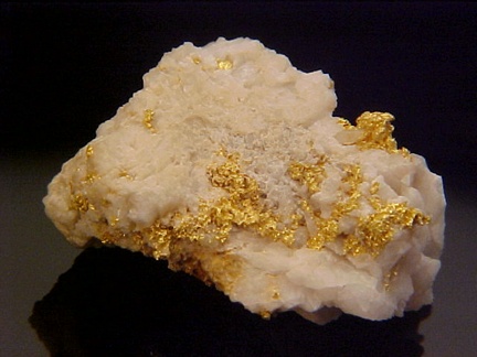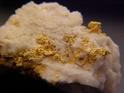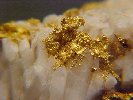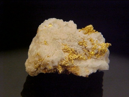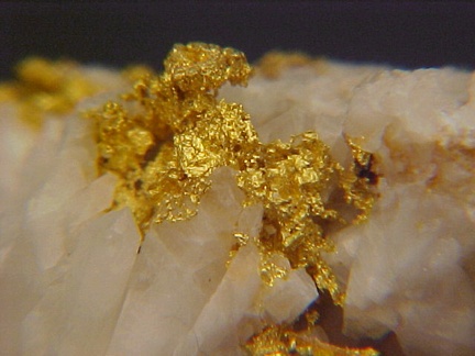 rich showing of native gold on a stark white crystalline quartz matrix!!! The native gold is present as a dense network