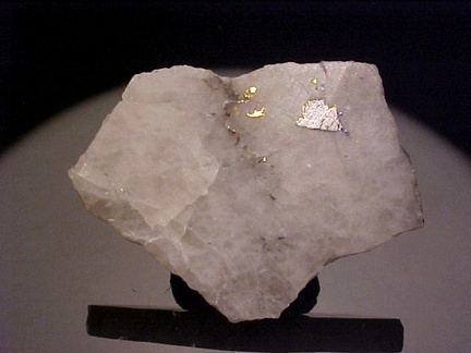 native gold in association with silvery arsenopyrite in quartz!!! The specimen has
