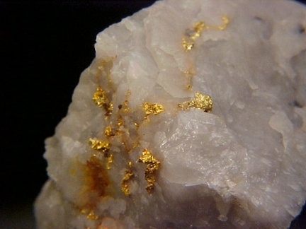 native gold on a stark white quartz matrix!!! The native gold exhibits the characteristic deep golden hue