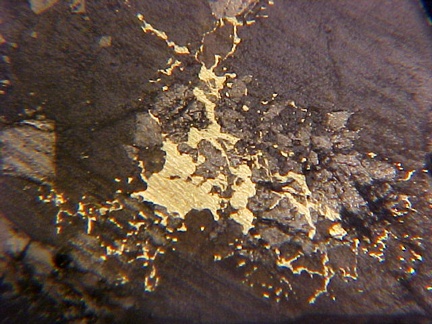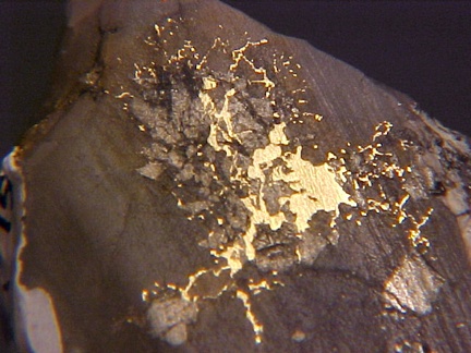 to see the network of gold inclusions glowing brightly within!!! The native gold appears to partially encapsulate some of the pyrite