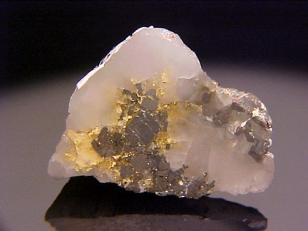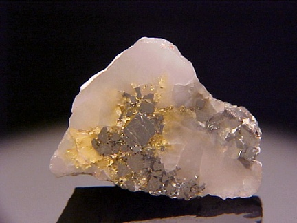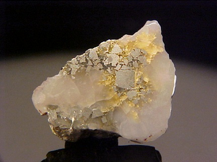 showing of bright, buttery yellow native gold in association with brassy pyrite crystals included in a quartz matrix!!! The