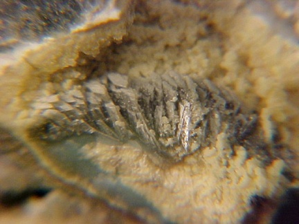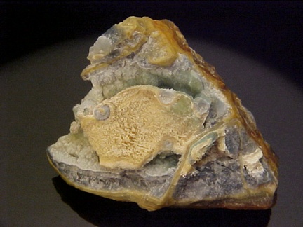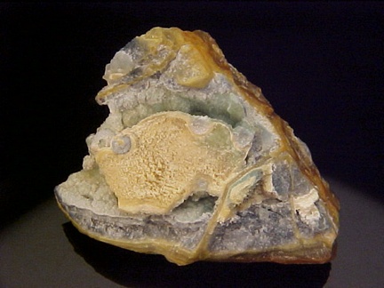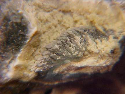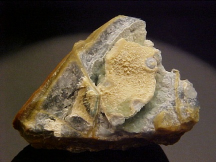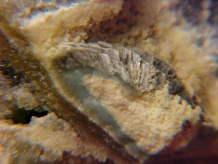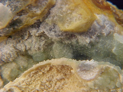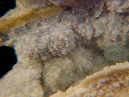 wardite in association with yellowish crandallite and other unidentified phosphates!!! There is also a spray of grayish gordonite crystals present as well!!!
