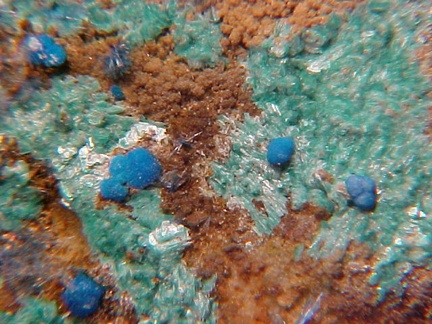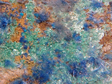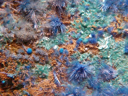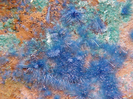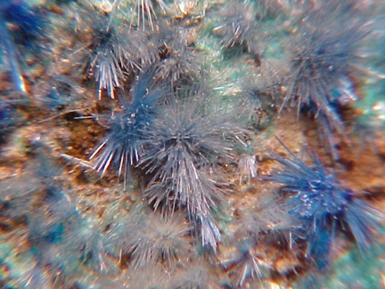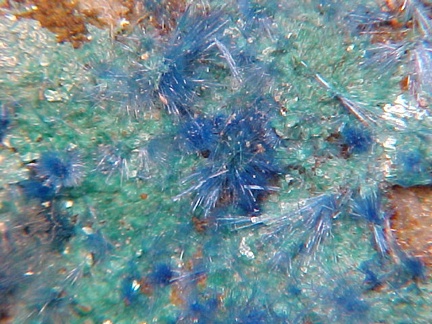 sprays of acicular crystals somewhat similar in appearance to the cyanotrichite crystals!!! There are scattered