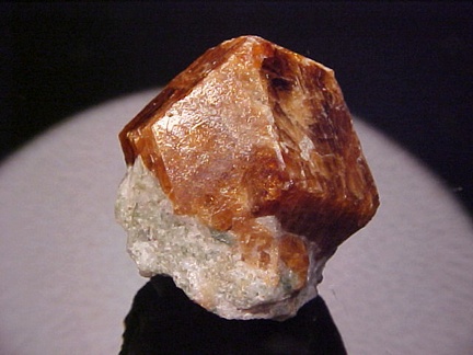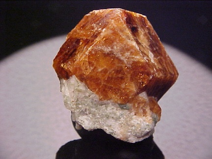 small amount of greenish massive diopside matrix!!! The crystal is sharp, glassy, and has lively orange-brown color!!! Specimens from this