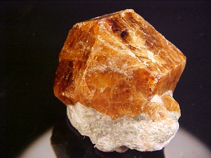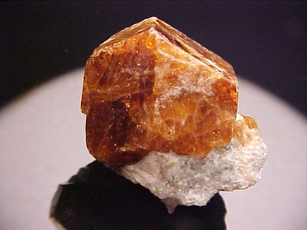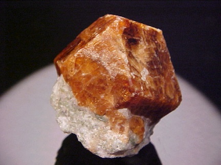 A classic example of grossular garnet from the Pitts Tenney Quarry in Maine!!! This specimen hosts a large single grossular crystal atop a
