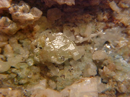 quite blocky in many instances - in fact some of them look almost hexagonal and barell-shaped!!! There are also a few tiny microcrystals of wulfenite in one