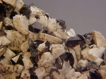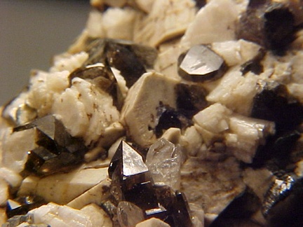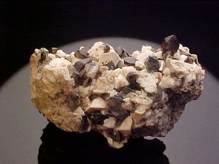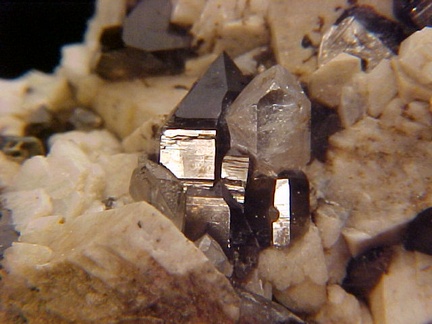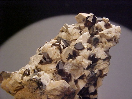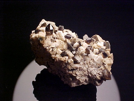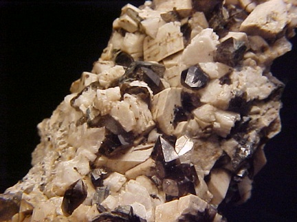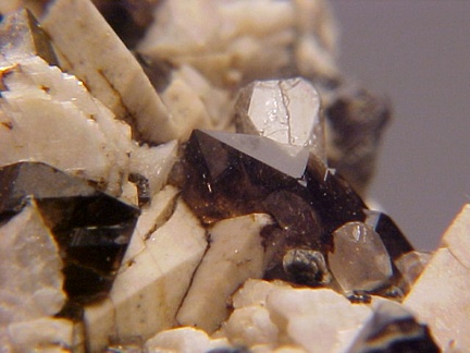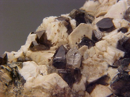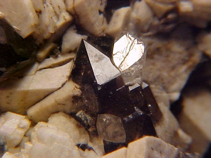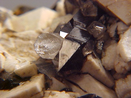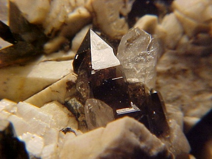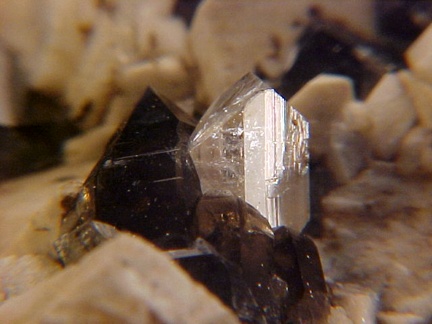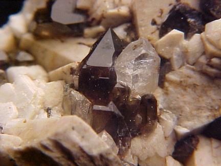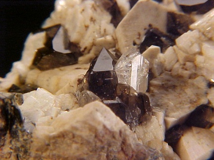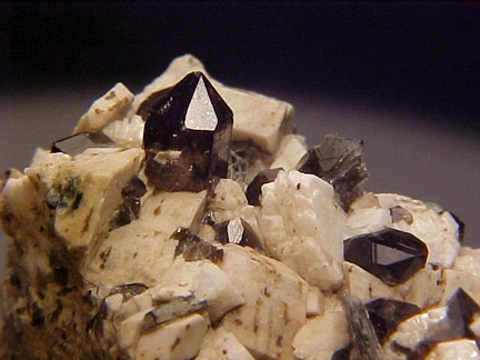 microcline crystals and darkly colored smoky quartz crystals that hosts a single silvery-white colorless topaz crystal!!! This specimen is in magnificent