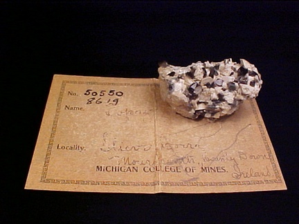 an unknown donor, a very old Michigan College of Mines label in addition to a later generation (but still quite old) museum label - all in its original glass bottomed specimen box!!!