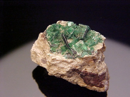 proudly perched atop a lightly colored matrix!!! The torbernite crystals are absolutely choice - with intense emerald green color, glassy luster, gemmy clarity, and