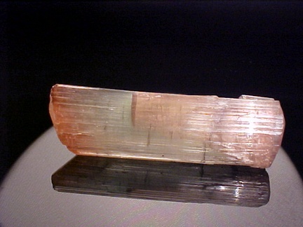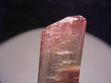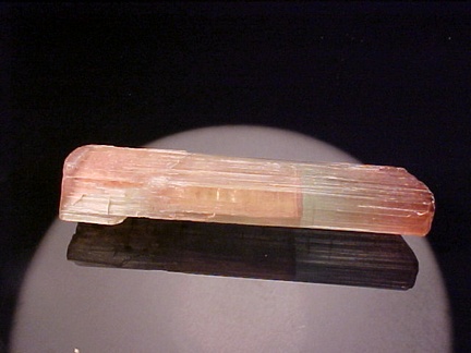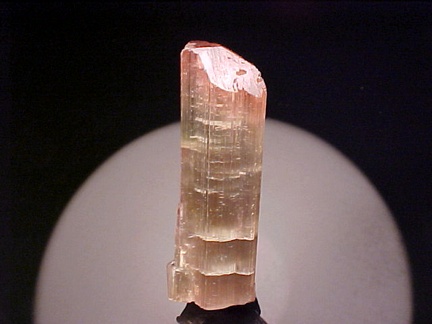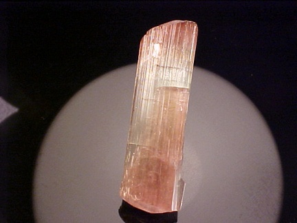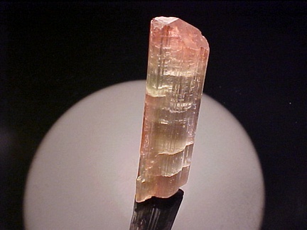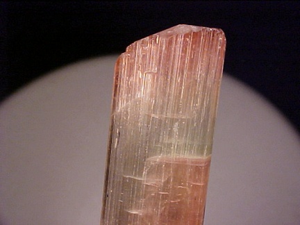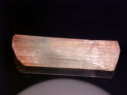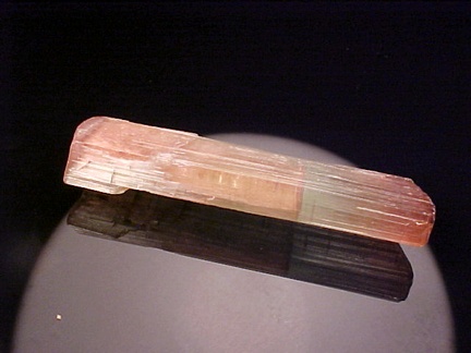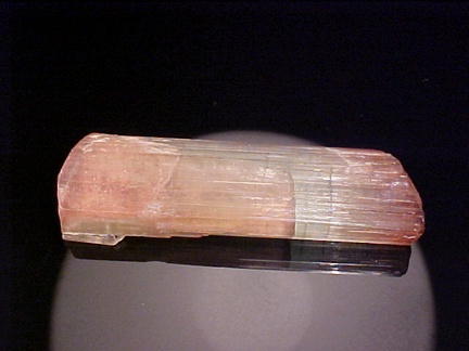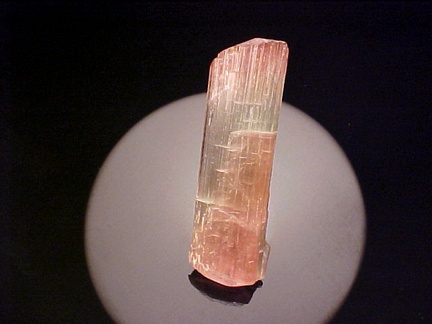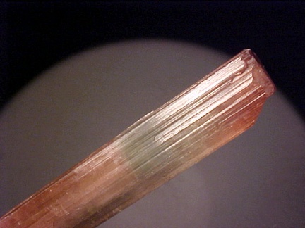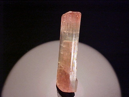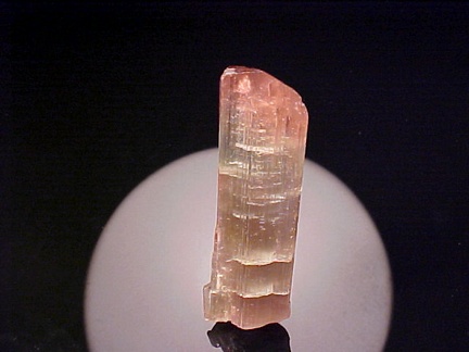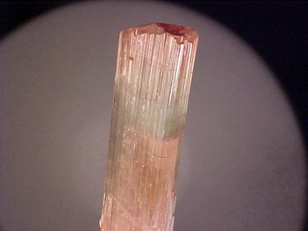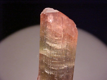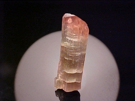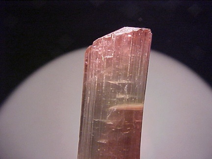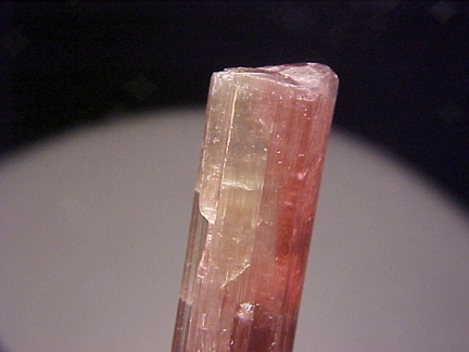 crystal of tourmaline!!! The crystal has a rich pink termination followed by a zone of colorless "achroite" and then a curious