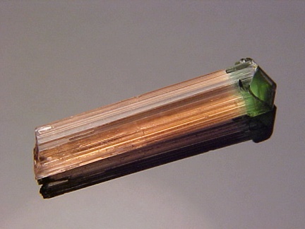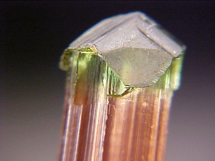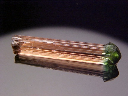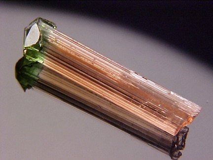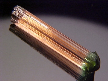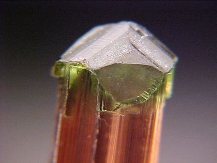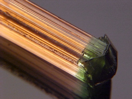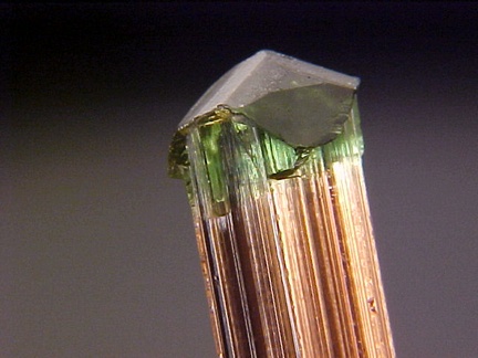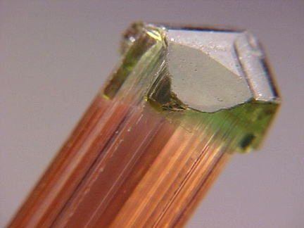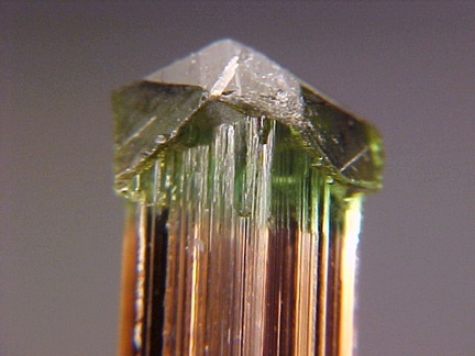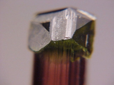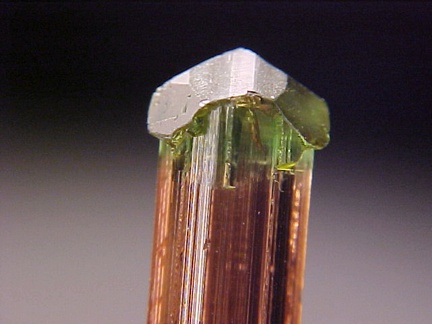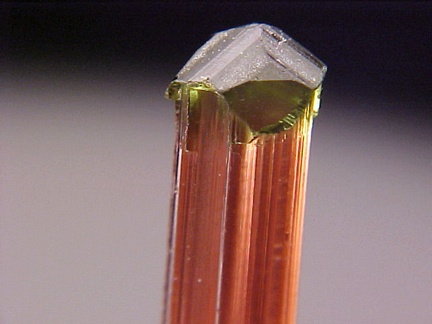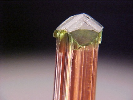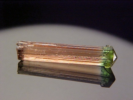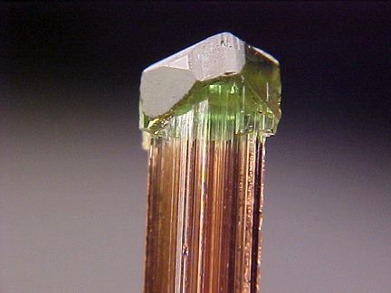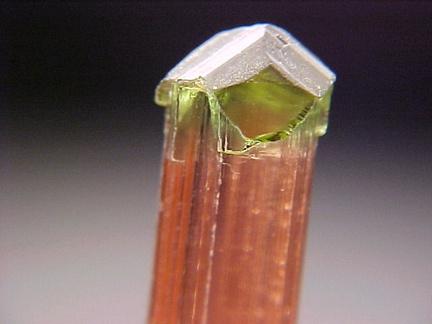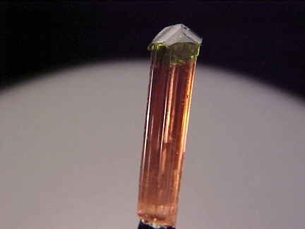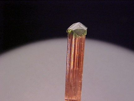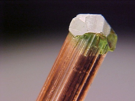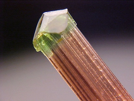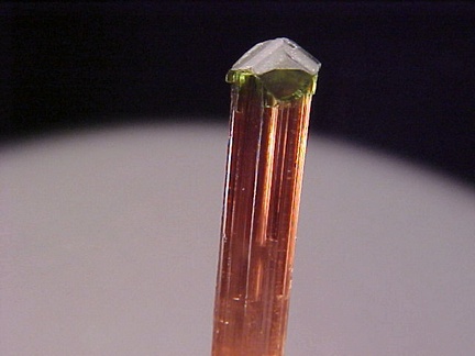 by a sceptered cap of bright green!!! The crystal is complete, undamaged, and gem clear throughout!!! The crystal has brilliant, glassy luster and the