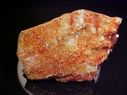 striking displays of rich, red vanadinite crystals on both sides!!! One side of the specimen hosts a rich showing of smaller vanadinite
