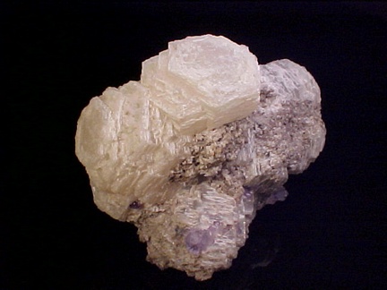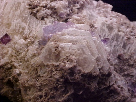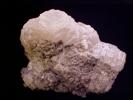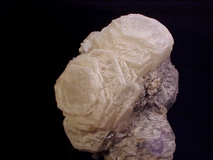 intergrown,, stepped hexagonal crystals of witherite in association with purple fluorite!!!