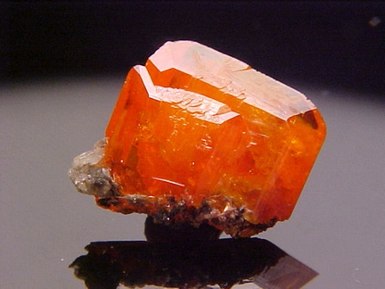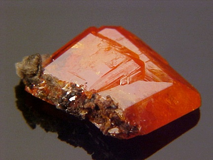 wulfenite!!! This specimen has razor sharp, brilliantly lustrous faces with intense red-orange color!!! The crystal is thick and chunky!!! The crystal is