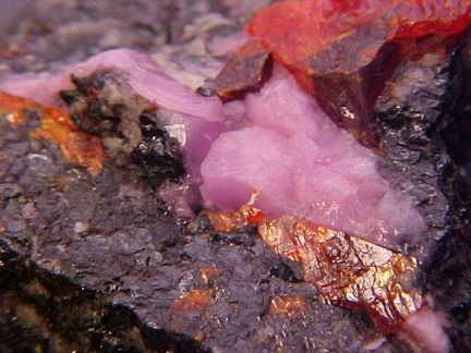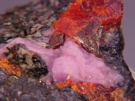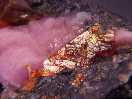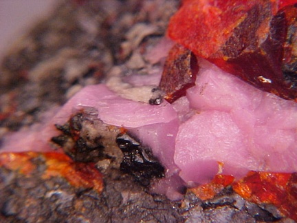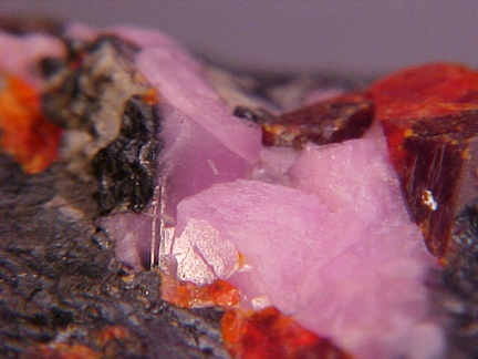 compliment to the zincite!!! Upon close inspection, the hodgkinsonite appears to have some possible crystalline faces in some small areas!!! Curiously there is a